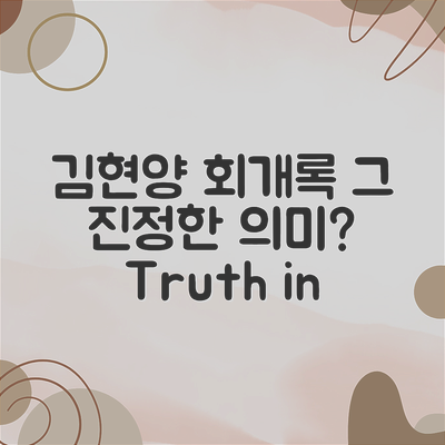김현양의 회개록은 단순한 책이 아닙니다. 오히려 인생의 전환점, 마음의 진정한 변화에 대한 이야기입니다. 여러분, 혹시 인생을 다시 시작하고 싶은 순간이 있었나요?