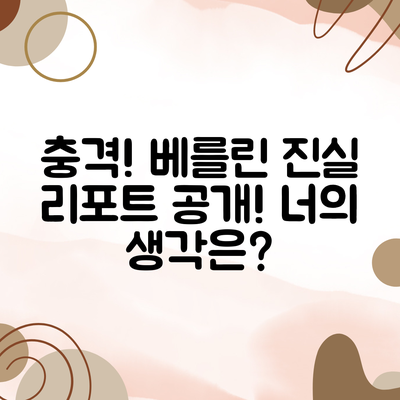 최근 베를린리포트에서 드러난 진실은 많은 이들에게 충격을 주었습니다. 그간 숨겨져 있던 불행과 고통에 대한 이야기가 현실로 다가오면서, 독자들은 이 문제를 깊이 고민하게 되었습니다.